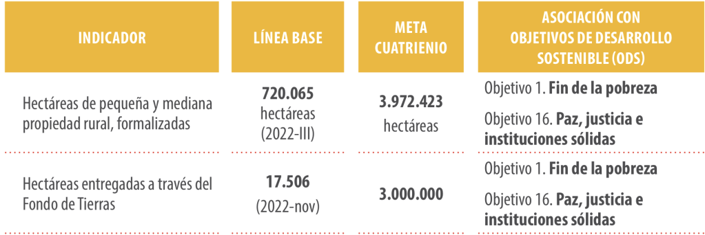 Meta que según diferentes medios se redujo a la mitad para este cuatrienio (11), pero que no deja de ser ambiciosa y necesaria en el camino que debe recorrer este proyecto de país, para alcanzar una justicia rural redistributiva.