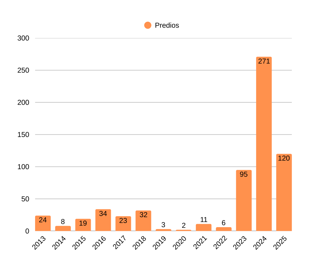 - Aumento del presupuesto para la compra de predios: en el año 2023 fue asignado alrededor $1,5 billones(12) y en el 2024 aproximadamente de 3.5 billones(13).